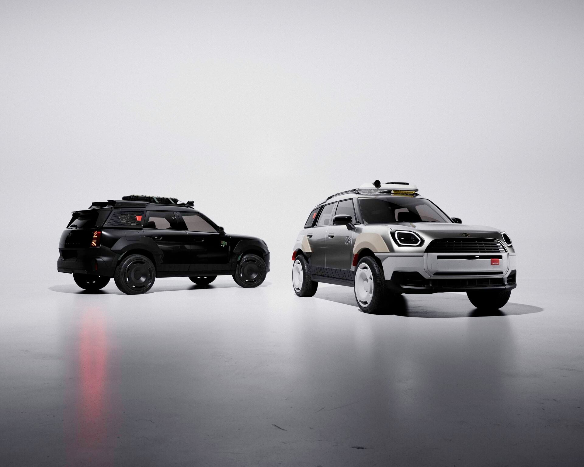 Die beiden MINI Countryman sehen nebeneinander aus wie Yin und Yang am Coachella-Festival. Der eine: hell, verspielt und leichtfüssig. Der andere: tiefschwarz, technisch und ernst. Erst zusammen entfalten sie ihre Wirkung. Wie zwei Lautsprecher einer Anlage.